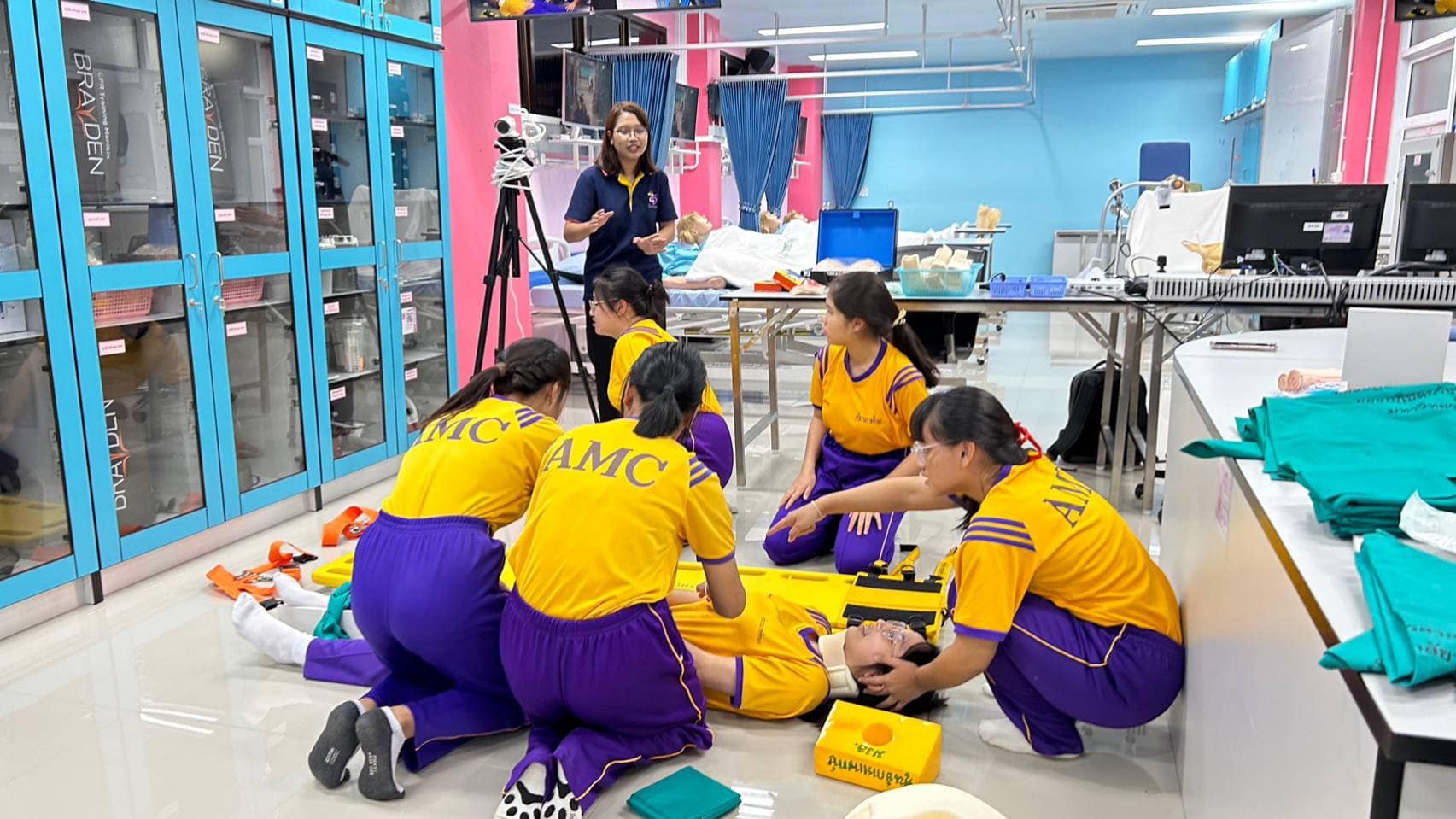 " สำนักวิชาสาธารณสุขศาสตร์ มหาวิทยาลัยวลัยลักษณ์ ต้อนรับนักเรียนท้องถิ่นเข้าร่วมการฝึกอบรมด้านการปฐมพยาบาลเบื้องต้น เมื่อวันเสาร์ที่ 26 สิงหาคม 2566 ณ ห้องปฏิบัติการสาธารณสุข ศูนย์เครื่องมือวิทยาศาสตร์และเทคโนโลยี อาจารย์กวินธิดา จีนเมือง ซึ่งรู้จักกันในนามอาจารย์มิ้ว พร้อมด้วยนักศึกษาสำนักวิชาสาธารณสุขศาสตร์ มหาวิทยาลัยวลัยลักษณ์ ได้เปิดห้องแลป onsite ต้อนรับนักเรียนและคณะครู ห้องเรียน English program ของโรงเรียนศรีธรรมราชศึกษา เพื่ออบรมเชิงปฏิบัติการที่มุ่งเน้นการส่งเสริมทักษะเฉพาะทาง ประกอบด้วย การปฐมพยาบาล การเคลื่อนย้ายผู้ป่วย และการช่วยฟื้นคืนชีพ ทักษะเหล่านี้เป็นสิ่งที่ขาดไม่ได้ในการช่วยเหลือผู้ที่ประสบอุบัติเหตุหรือภัยพิบัติ ซึ่งยืนยันถึงบทบาทสำคัญของนักสาธารณสุขศาสตร์ในการรักษาความปลอดภัยของชุมชน โอกาสหน้าเราจะไปจัด Workshop ดี ๆ แบบนี้ที่ไหนโปรดติดตามนะคะ"