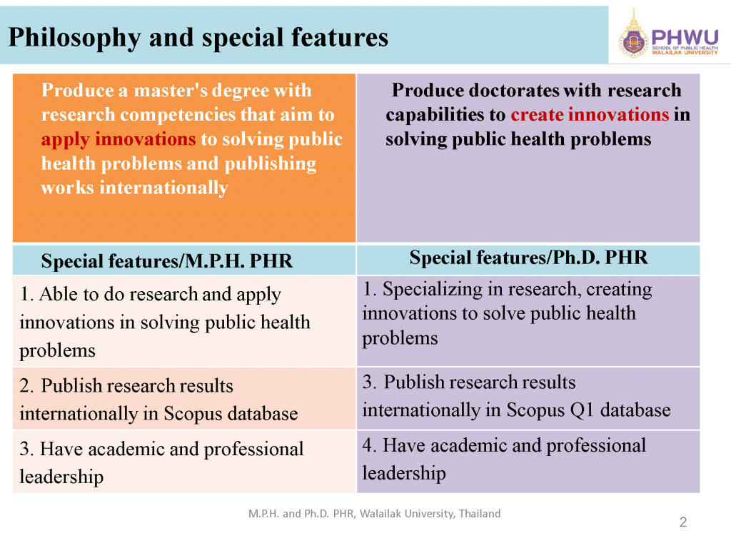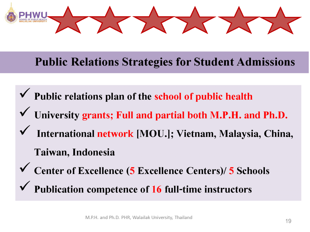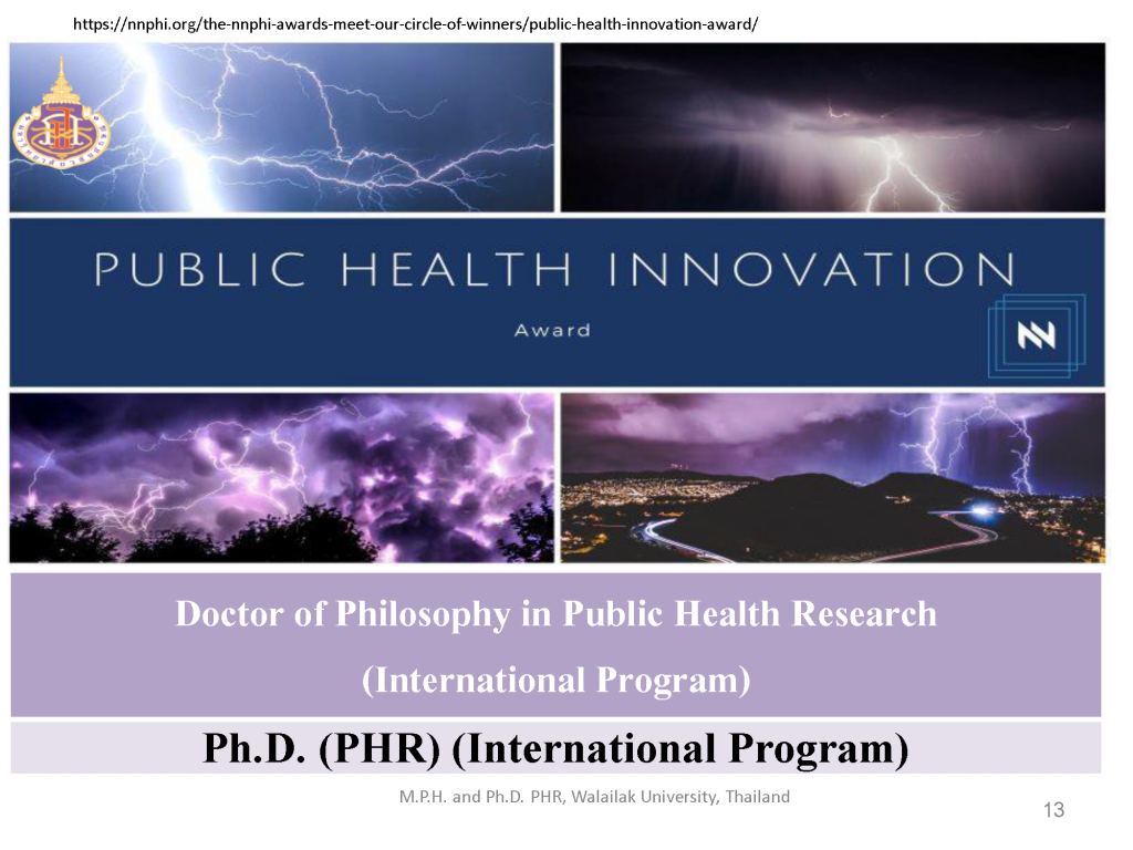 - Applicants must apply to study in Doctor of Philosophy Program in Public Health Research (International Program), School of Public Health, Walailak University.