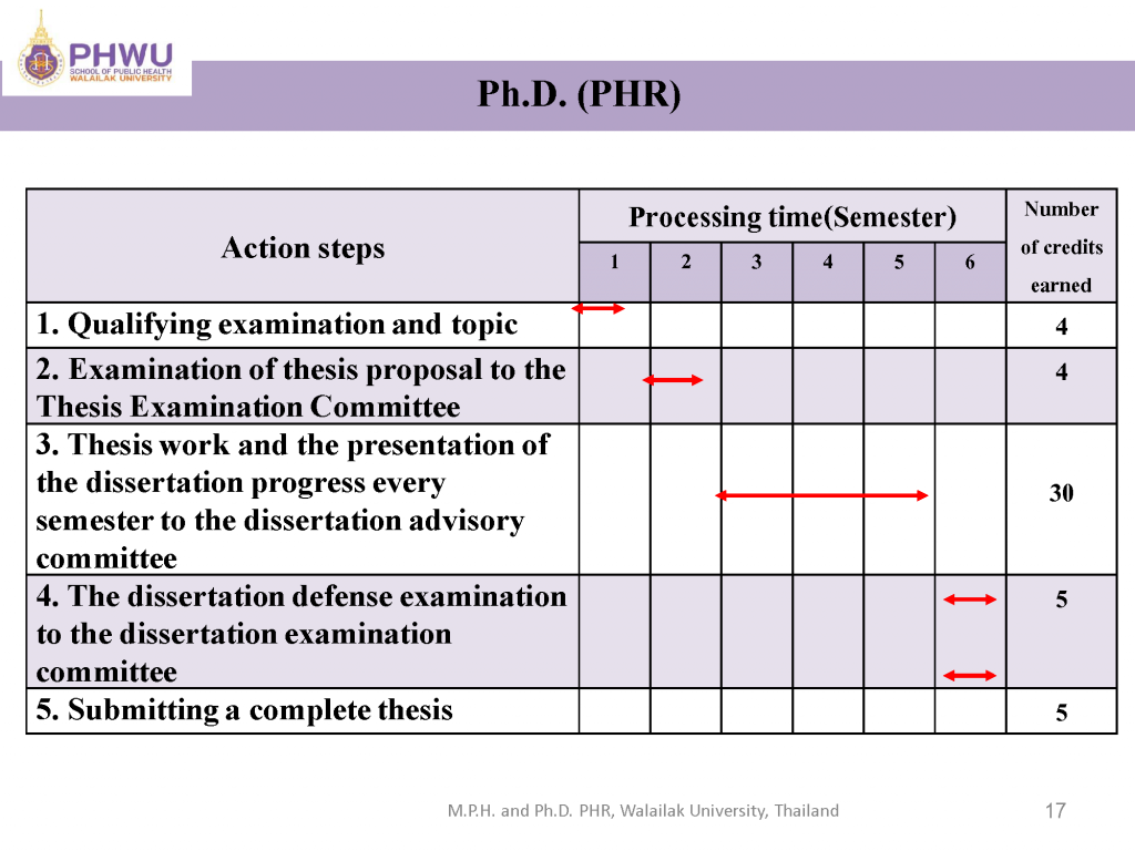 Structure of PhD. PHR program total 48 Credits ( 3 years: 6 semesters)