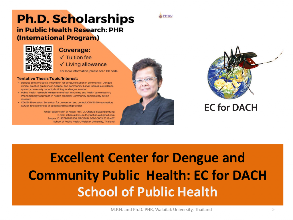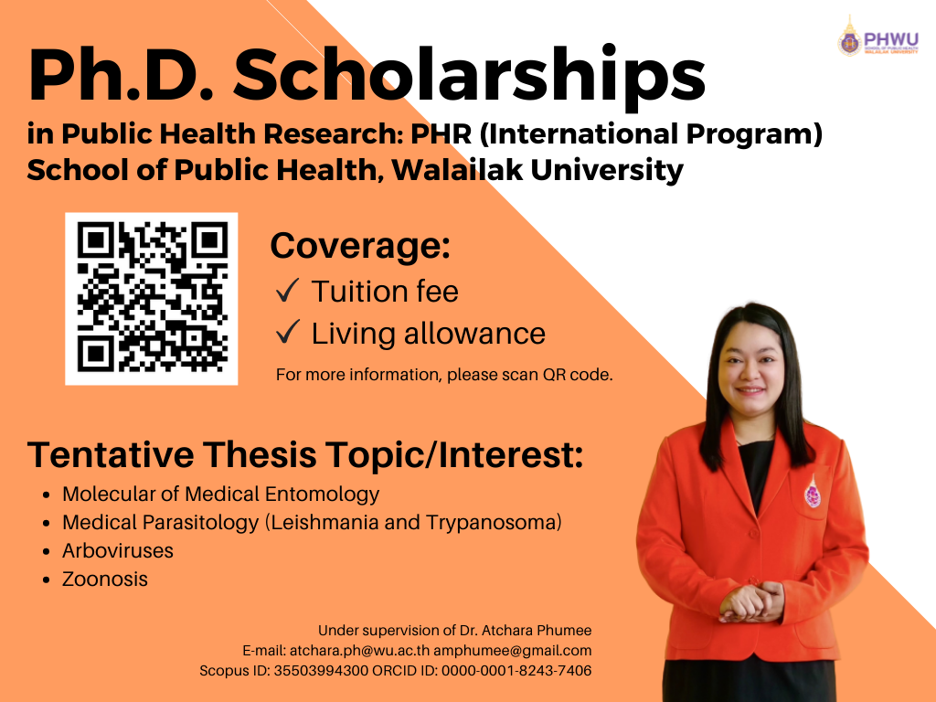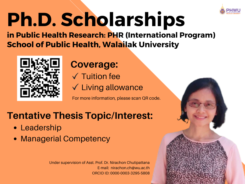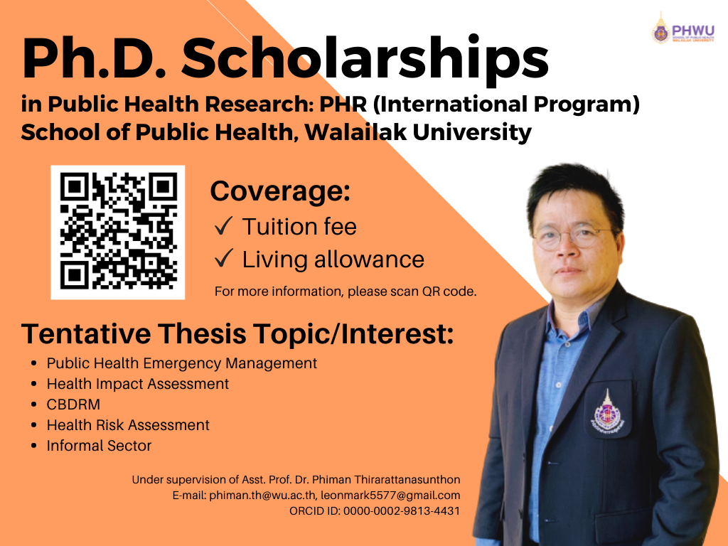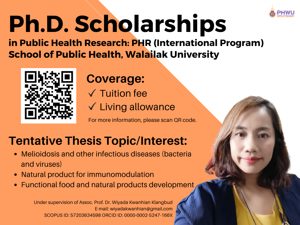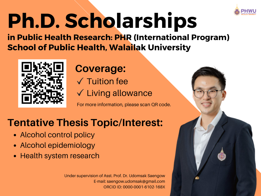 This scholarship is offered by Doctor of Philosophy Program in Public Health Research (International Program), School of Public Health, Walailak University.