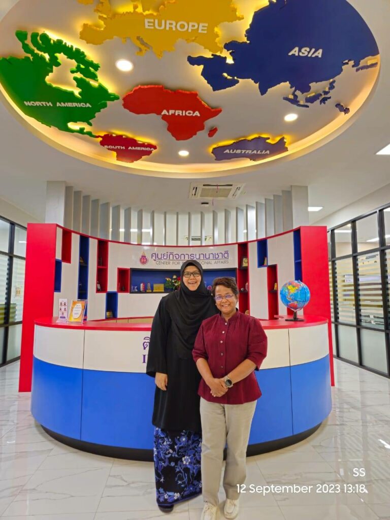 Tuesday, September 12, 2023, the Center for International Affairs welcomed Assoc. Prof. Dr. Sharmarina Shohaimi, visiting lecturer from the Department of Biology, Faculty of Science, Universiti Putra Malaysia, to endeavor on the opportunities that will arise in cooperation in Various aspects and research together with lecturers in the School of Public Health, Assoc. Prof. Dr. Charuai Suwanbamrung is the project leader. The School of Public Health has continuously emphasized cooperation activities with foreign countries. In addition to expanding cooperation to be more concrete, it also supports and promotes writing research projects, publishing joint work between lecturers in the School of Public Health and lecturer from Universiti Putra Malaysia, and exchanging academic knowledge between professors from both universities.